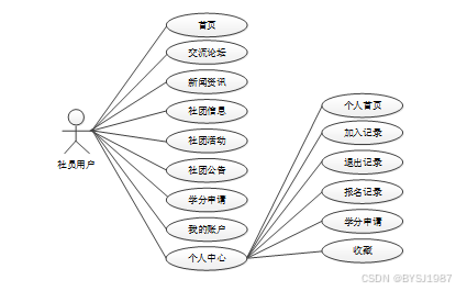 图2-4 校园社团信息管理系统社员用户角色用例图