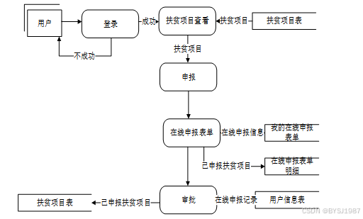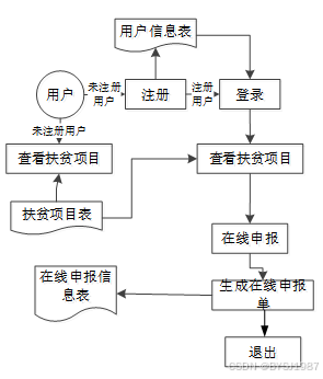 农村扶贫管理系统主要的目的就是实现在线申报扶贫,图2-1就是系统的数据流图。