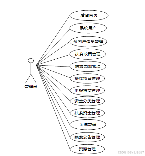 图2-8基于springboot的农村扶贫管理系统管理员角色用例图