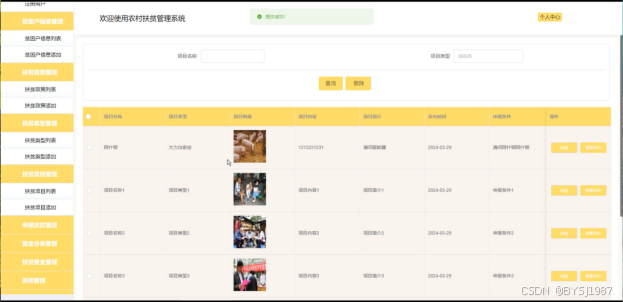 扶贫项目管理: 管理各类扶贫项目的信息,包括项目进展、审核状态等。