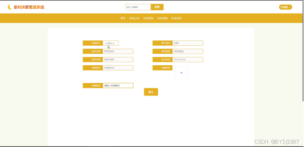 申报扶贫: 用户可以提交申请扶贫的相关信息。