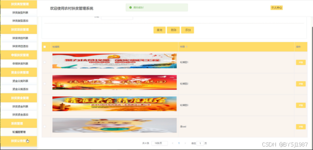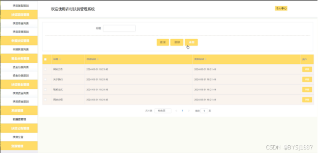 扶贫扶贫公告管理: 管理系统发布的扶贫扶贫公告信息,包括添加、编辑和删除等操作。