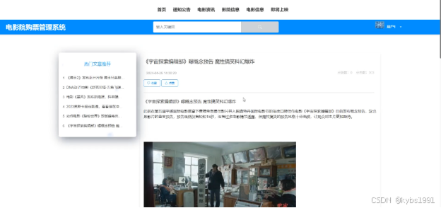 (4)电影资讯:当用户点击“电影资讯”这一菜单按钮,会显示管理员在后台发布的所有的电影资讯,可以查看详情,进行收藏、点赞、评论等。