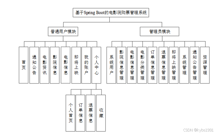 电影院购票管理系统我划分为了普通用户模块和管理员模块两大部分。