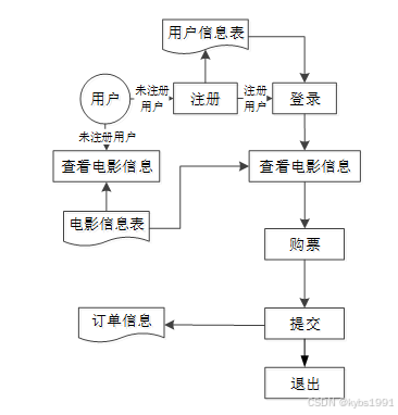 分析完电影院购票管理系统的数据流,那么接下来我们来看系统的业务流程,图2-4就是业务流程图: