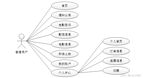 图2-1 电影院购票管理系统普通用户角色用例图
