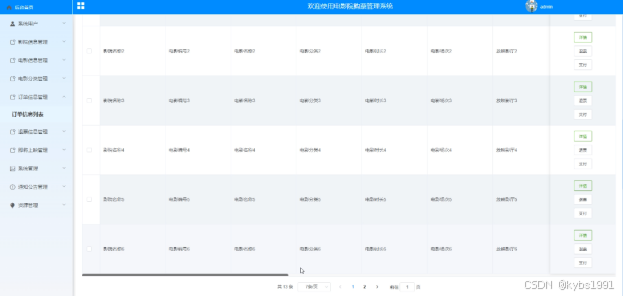 管理员点击“订单信息管理”会显示出所有的订单信息,支持通过影院名称、电影名称、订单状态和支付状态等关键字对订单信息进行查询。订单信息管理界面如下图4-14所示。