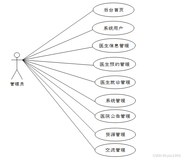 5.管理员功能,管理员可以对系统用户、医生信息管理、医生预约管理、医生就诊管理、系统管理、医院公告管理、资源管理、交流管理等进行管理。