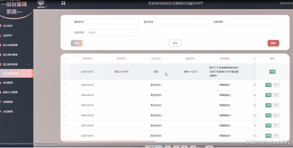 管理员可以管理医生门诊预约的信息,包括审核预约、调整预约时间等操作,确保预约信息的合理性和顺利进行。界面如下图4-10所示。