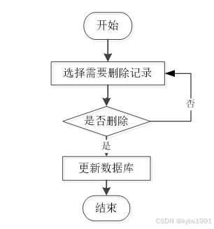 用户可选择要删除的信息进行信息删除操作,在删除信息时系统提示是否确定删除信息,是则删除信息成功,系统数据库将信息进行删除。删除信息流程图如图2-7所示。