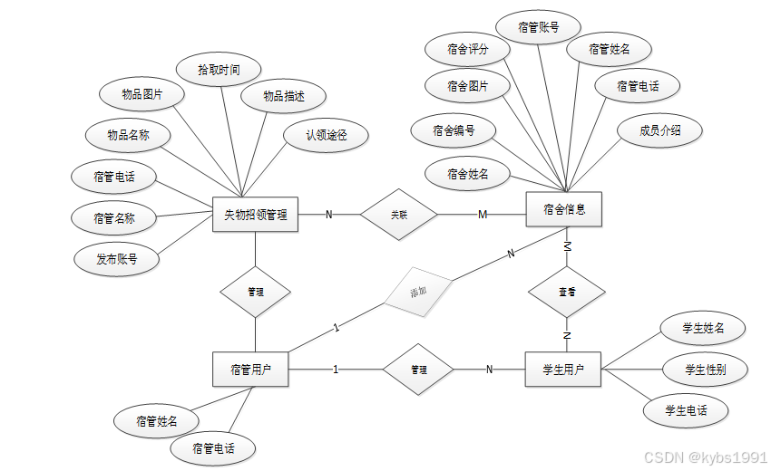 下面是整个宿舍管理系统中主要的数据库表总E-R实体关系图。