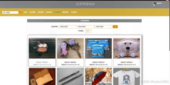 失物招领:用户点击可通过搜索宿管姓名、物品名称和拾取时间进行查看失物招领列表;同时可对信息就像你点赞、收藏和评论。界面图如下。