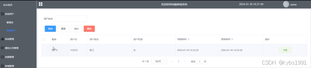 管理员可以查看某一用户详情,可以对系统用户进行查询、重置、添加和删除操作,系统用户界面如下图4-5所示: