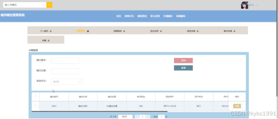 长期租赁管理:管理员点击可查看长期租赁列表,同时可对租赁申请进行审核回复;也可对摊位续签进行管理操作。界面图如下。