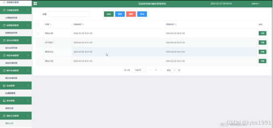 (13)通知公告管理:管理员点击可查看通知公告,如需添加新的通知公告,点击右侧“添加”按钮,输入标题和正文,点击“确认”按钮进行添加。
