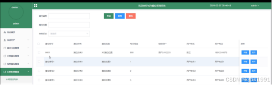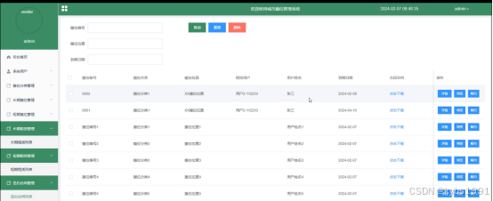 (7)短期租赁管理:管理员点击可查看短期租赁列表;同时可对租赁申请进行审核回复;也可对摊位续签进行管理操作。