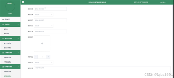 (5)短期摊位管理:管理员点击可查看短期摊位列表和短期摊位添加;点击“短期摊位添加”,,输入摊位编号,选择分类,输入摊位面积,选择摊位状态,输入摊位位置,上传摊位图片,输入每月租金,选择租赁状态,输入摊位详情,点击“提交”按钮进行添加。同时可对短期摊位进行增删改查。