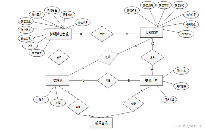 下面是整个城市摊位管理系统中主要的数据库表总E-R实体关系图。