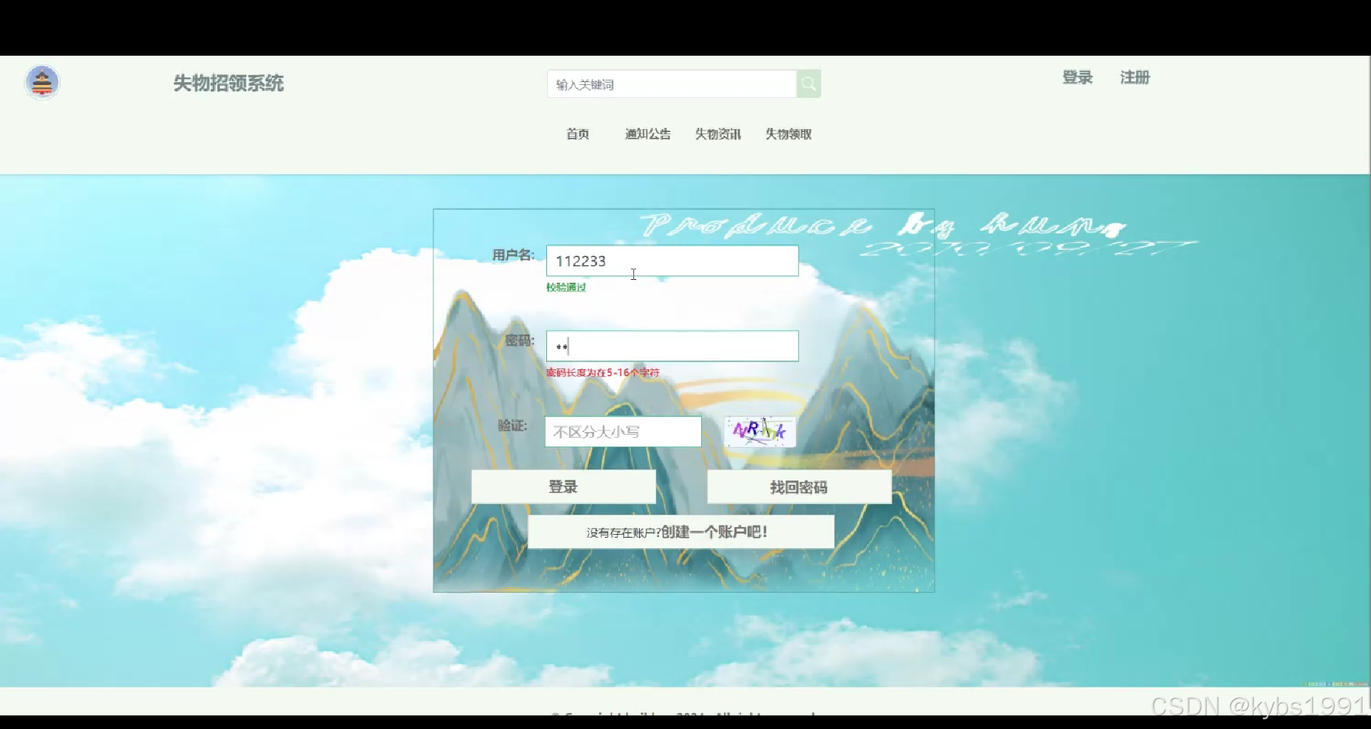 - 首页:用户可以查看最新的失物信息和系统发布的通知公告。