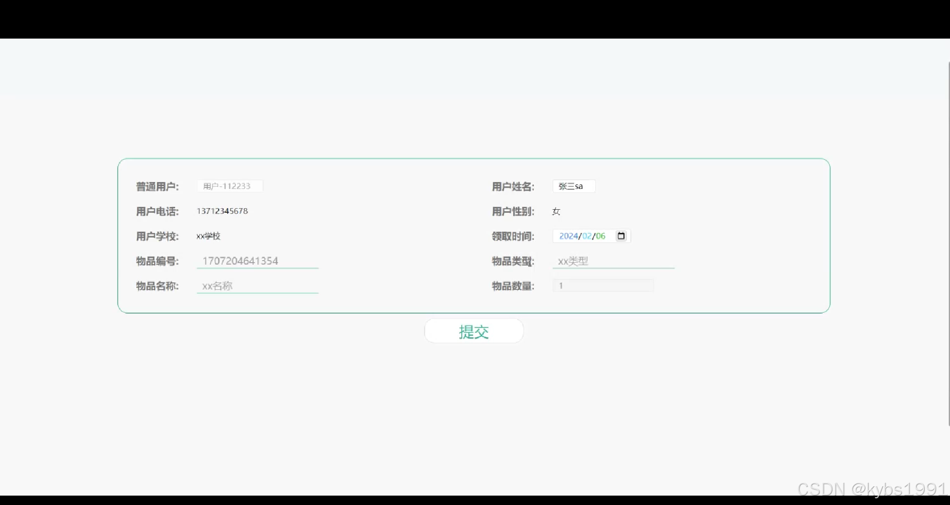 - 失物领取:用户可以浏览可领取的失物列表,并申请领取失物。用户可以查看失主的联系方式和相关信息,包括姓名、电话、性别、学校、领取时间、物品编号、类型、物品名称和数量等。