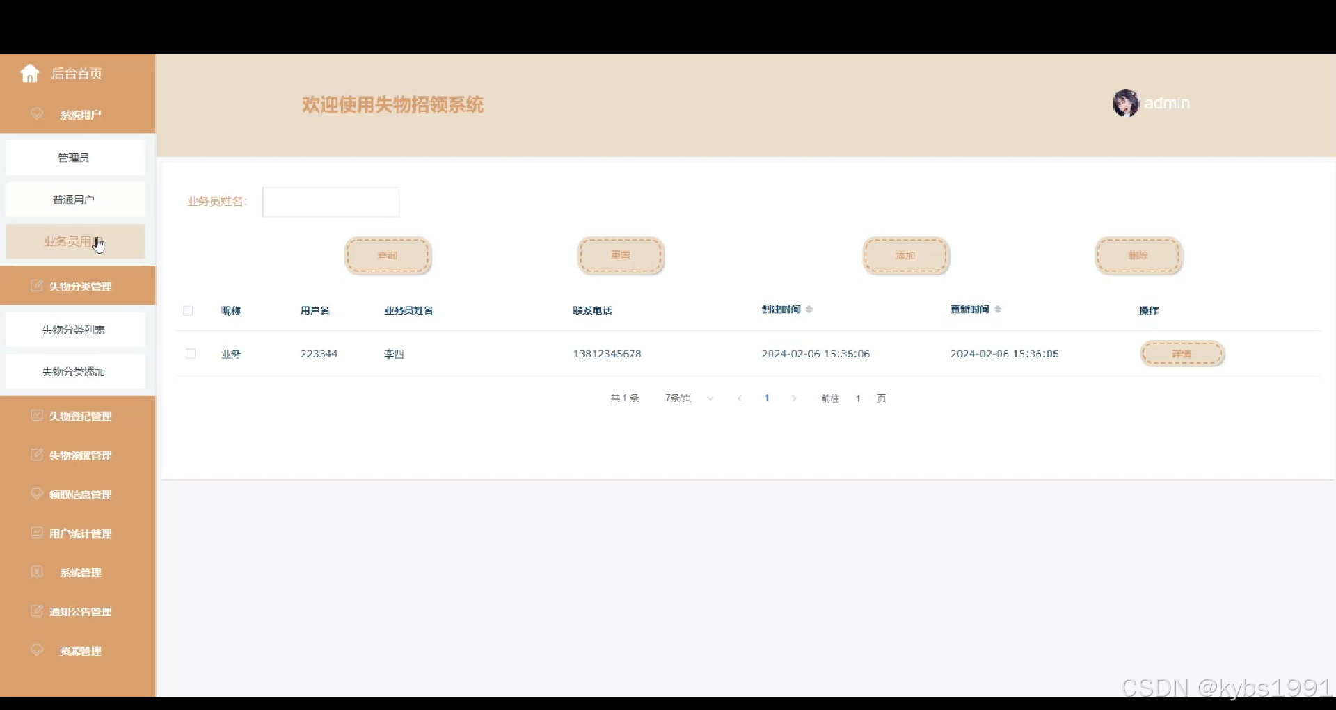 - 用户统计管理:业务员用户可以查看和分析系统中的用户数据和统计信息,包括用户数量、失物登记数量和领取申请数量等。