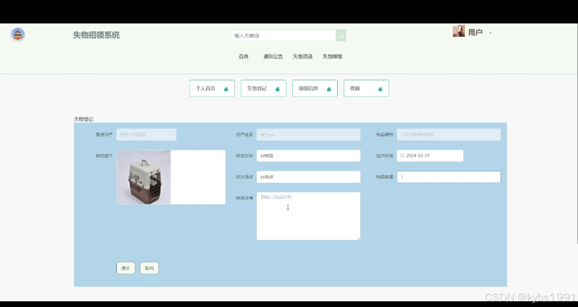 - 失物登记:用户可以提交失物登记信息,包括姓名、物品编号、图片、物品名称、挂失时间、地点、数量和物品详情等。用户需要提供尽可能详细的信息来帮助他人找回失物。