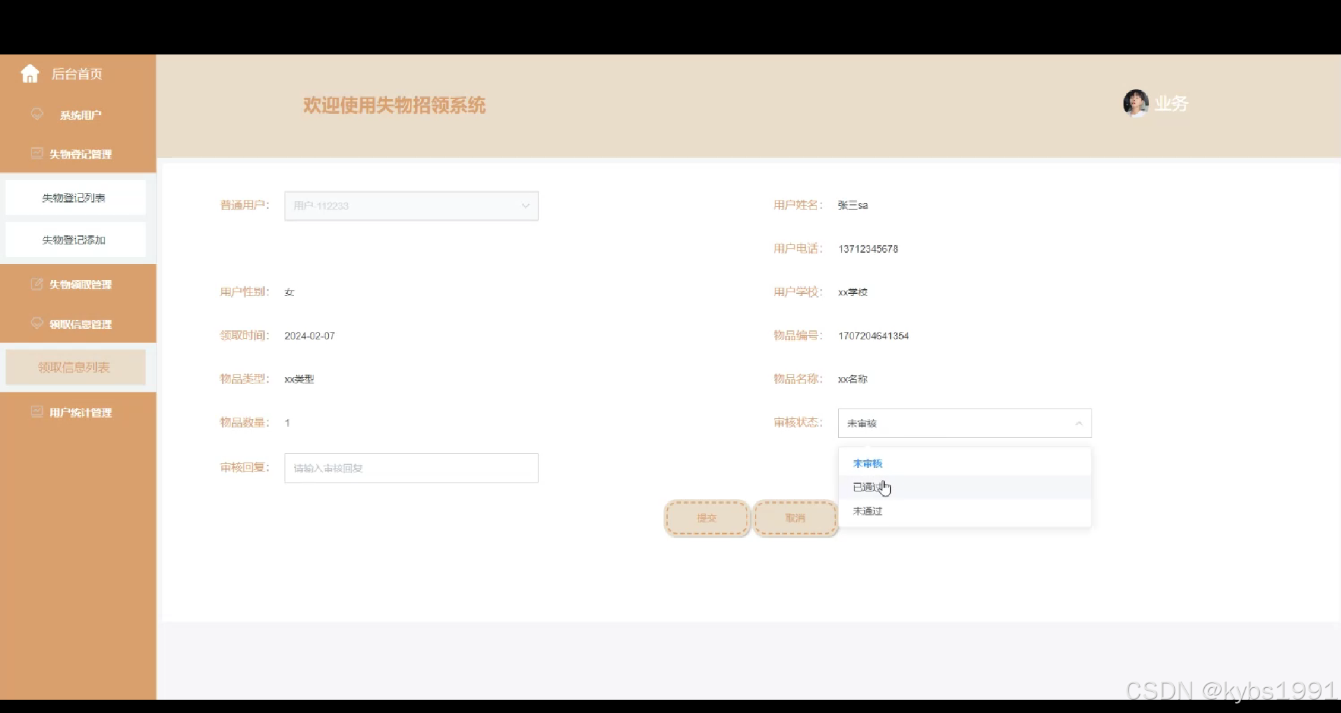 - 失物领取管理:业务员用户可以管理可领取的失物信息,包括查看、审核和编辑等操作。他们可以及时更新失物的领取状态,确保信息的实时性。