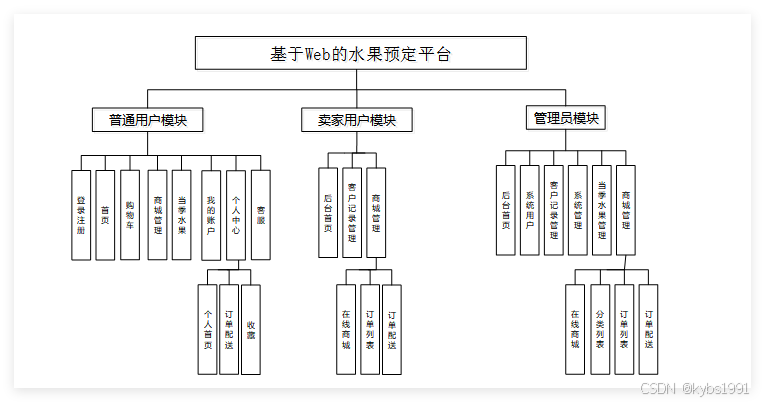 按照基于Web的水果预定平台的角色,系统划分为了普通用户模块、卖家用户模块和管理员模块这三大部分。在设计和实现基于Spring Boot的水果预定平台时,我们需要充分考虑普通用户、卖家用户和管理员的不同需求,以确保系统能够满足各类用户的功能要求。以下是针对不同用户角色的功能分析: