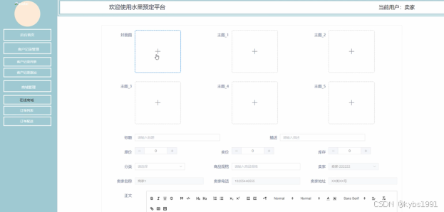 在线商城: 管理自己的水果商品,包括上架、下架和编辑商品信息。