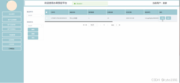 订单配送: 管理订单的配送情况,包括处理订单、更新配送状态等。
