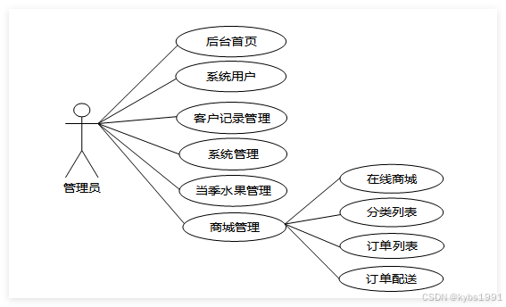 管理员是维护整个基于Web的水果预定平台中所有数据信息的。管理员角色用例如图2-5所示。