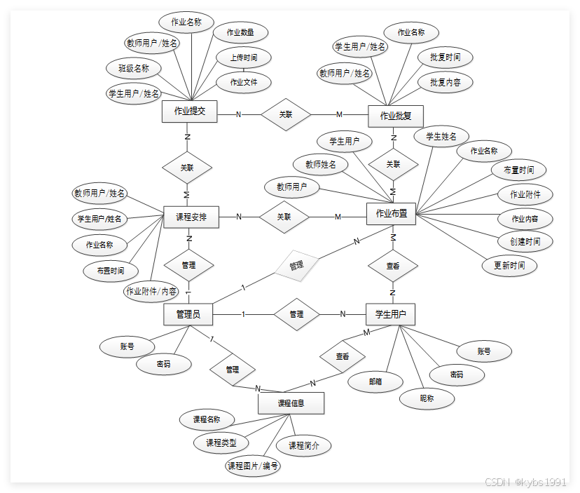 下面是整个网上作业管理系统中主要的数据库表总E-R实体关系图。