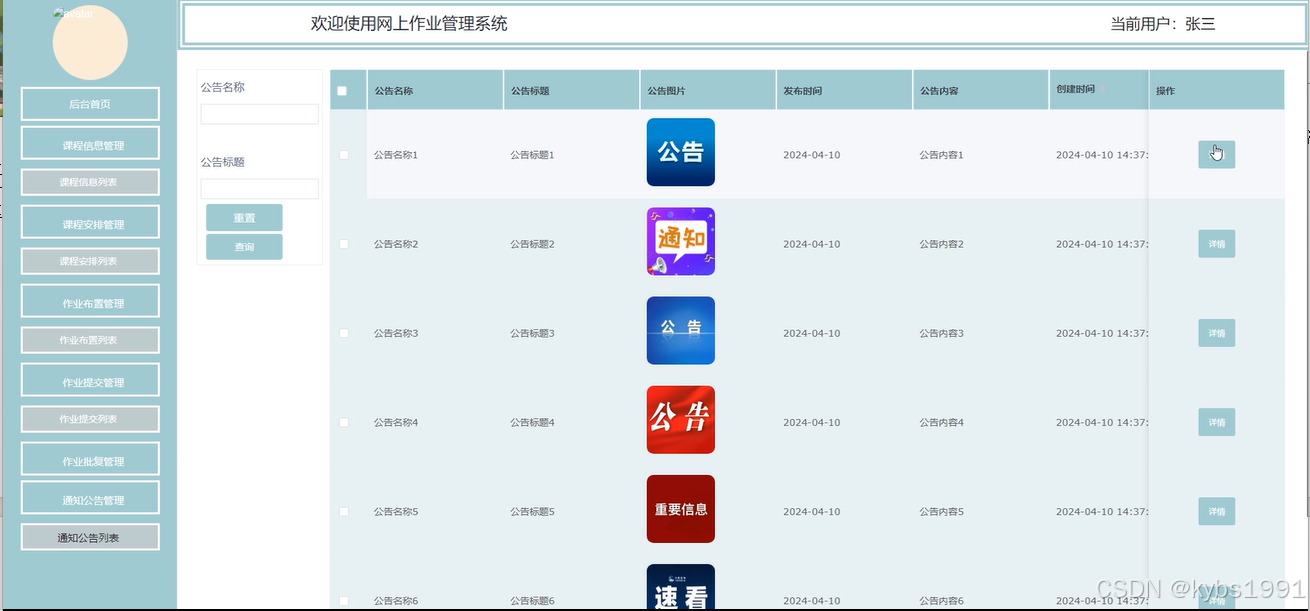 本研究旨在解决网上作业管理系统的问题,设计并实现了基于SpringBoot的网上作业管理系统。系统主要包括管理员、教师用户和学生用户三类角色,涵盖课程信息管理、作业管理和通知公告管理等功能模块。