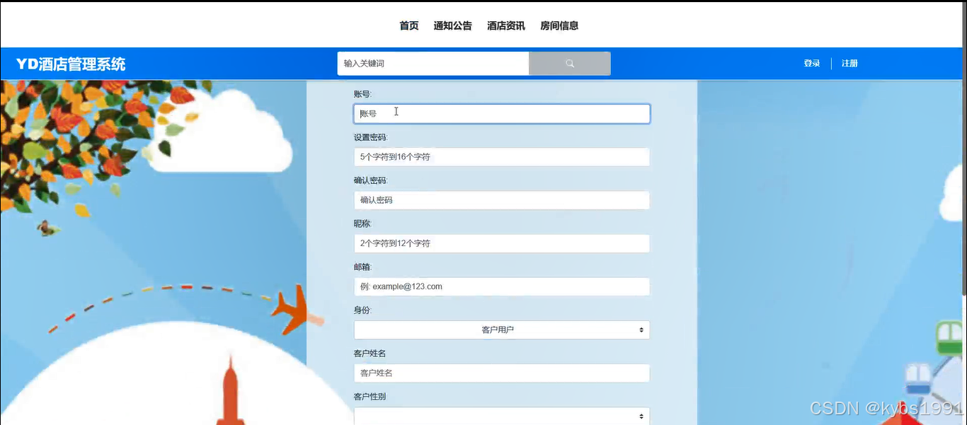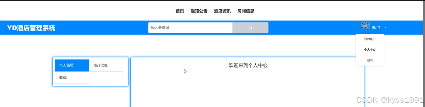 (1)注册登录:用户注册并登录酒店管理系统 ;用户对个人信息的增删改查,比如个人资料,头像、密码修改。