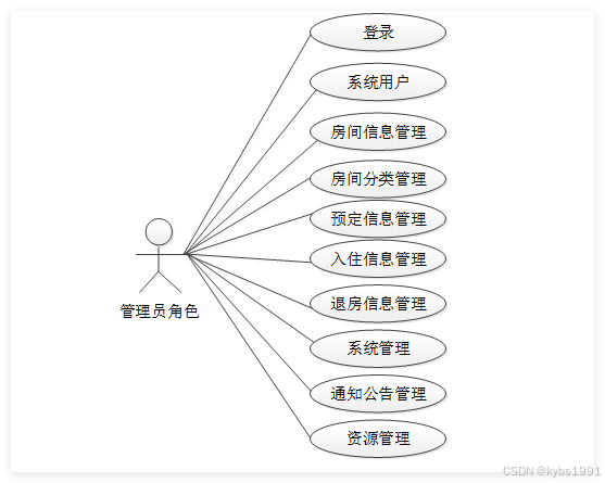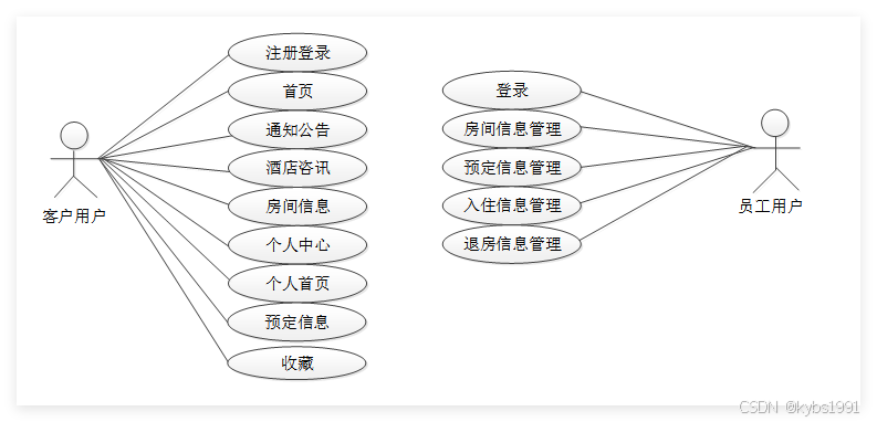 通过2.3功能的分析,得出了本酒店管理系统的用例图: