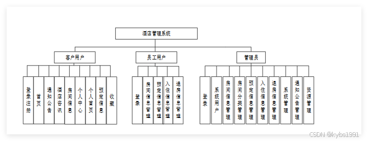 按照酒店管理系统的角色,我划分为了客户用户管理模块、员工管理模块和管理员管理模块这三大部分。