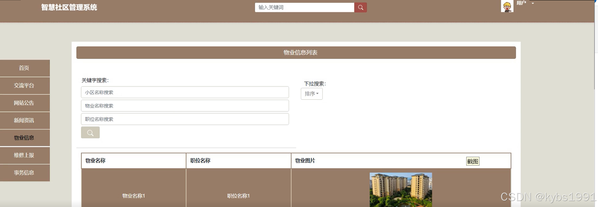 物业信息:提供物业服务相关的信息,包括物业费用、服务时间、联系方式等。界面如下图所示。