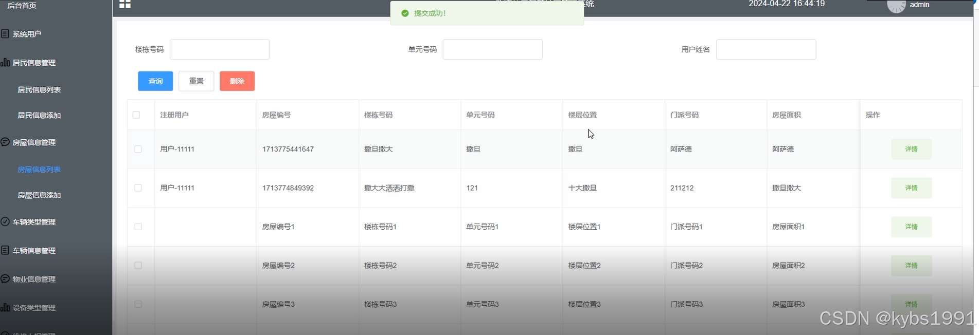 支持房屋信息的录入、编辑、删除和查询操作。界面如下所示。