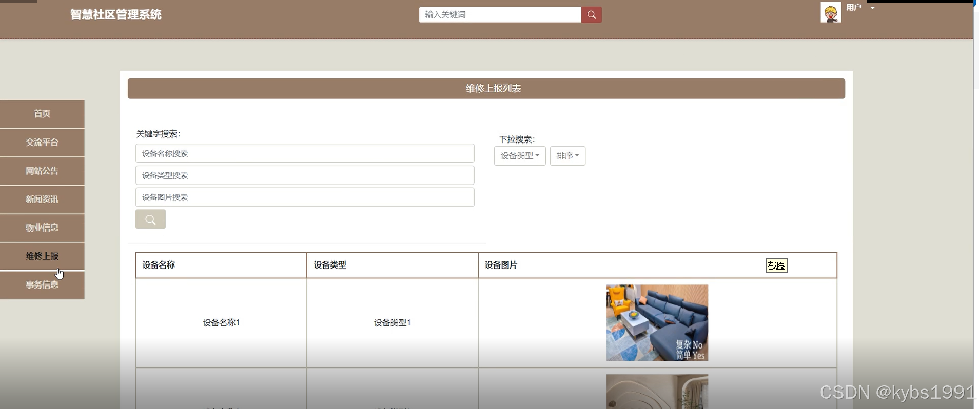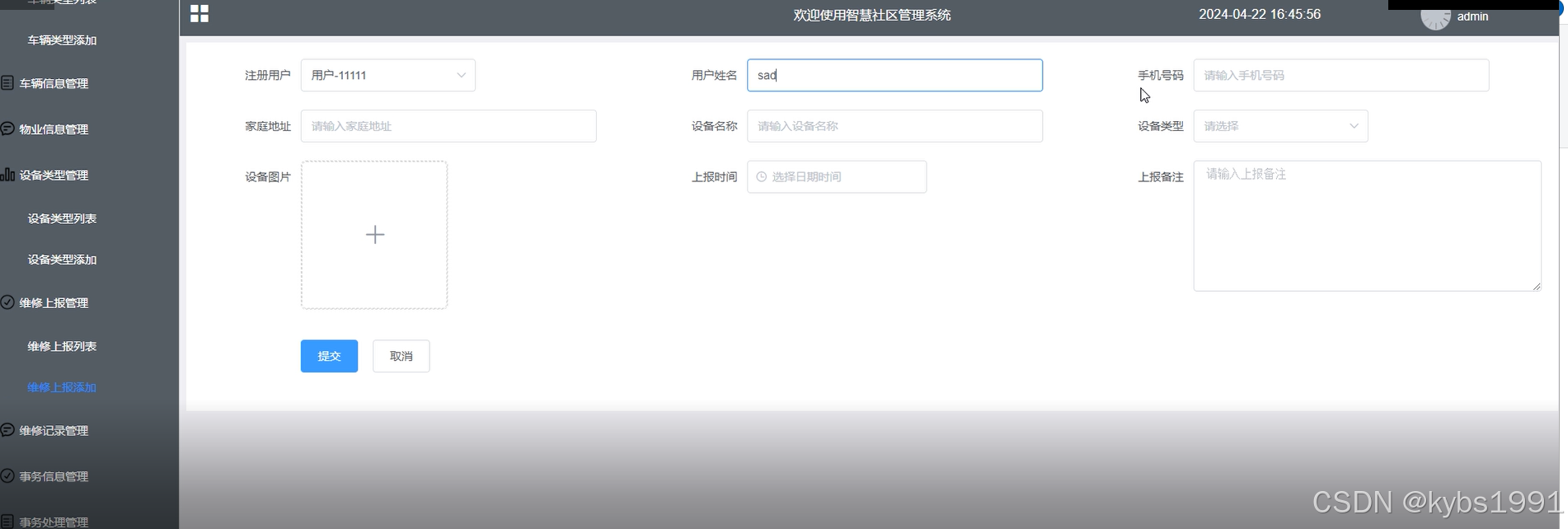 维修上报:居民可以通过系统报告房屋或公共设施的维修需求,方便物业及时处理。界面如图所示。