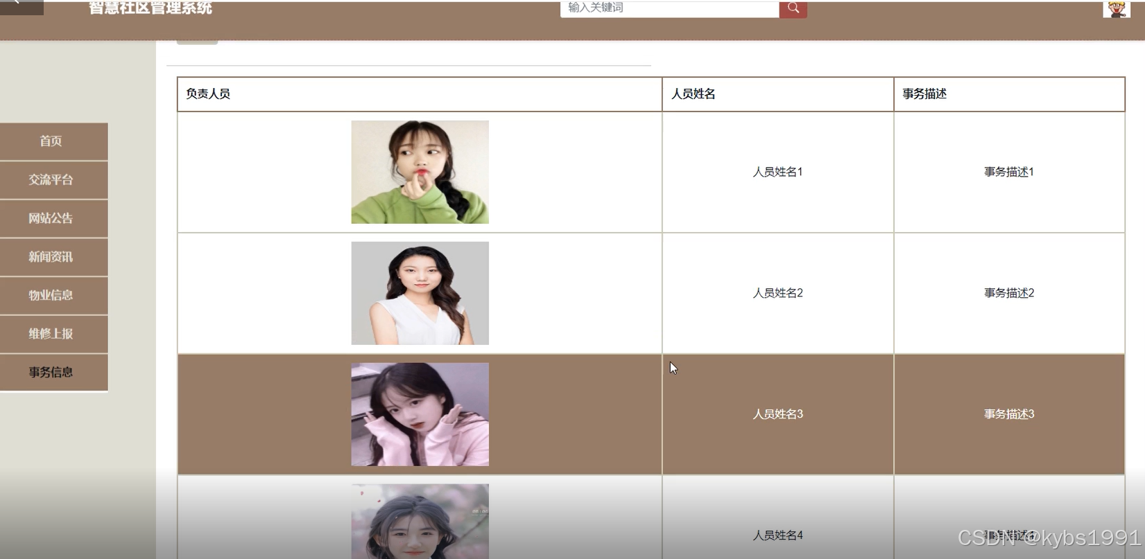事务信息:提供社区相关的事务信息,如活动通知、会议安排等。界面如图所示。