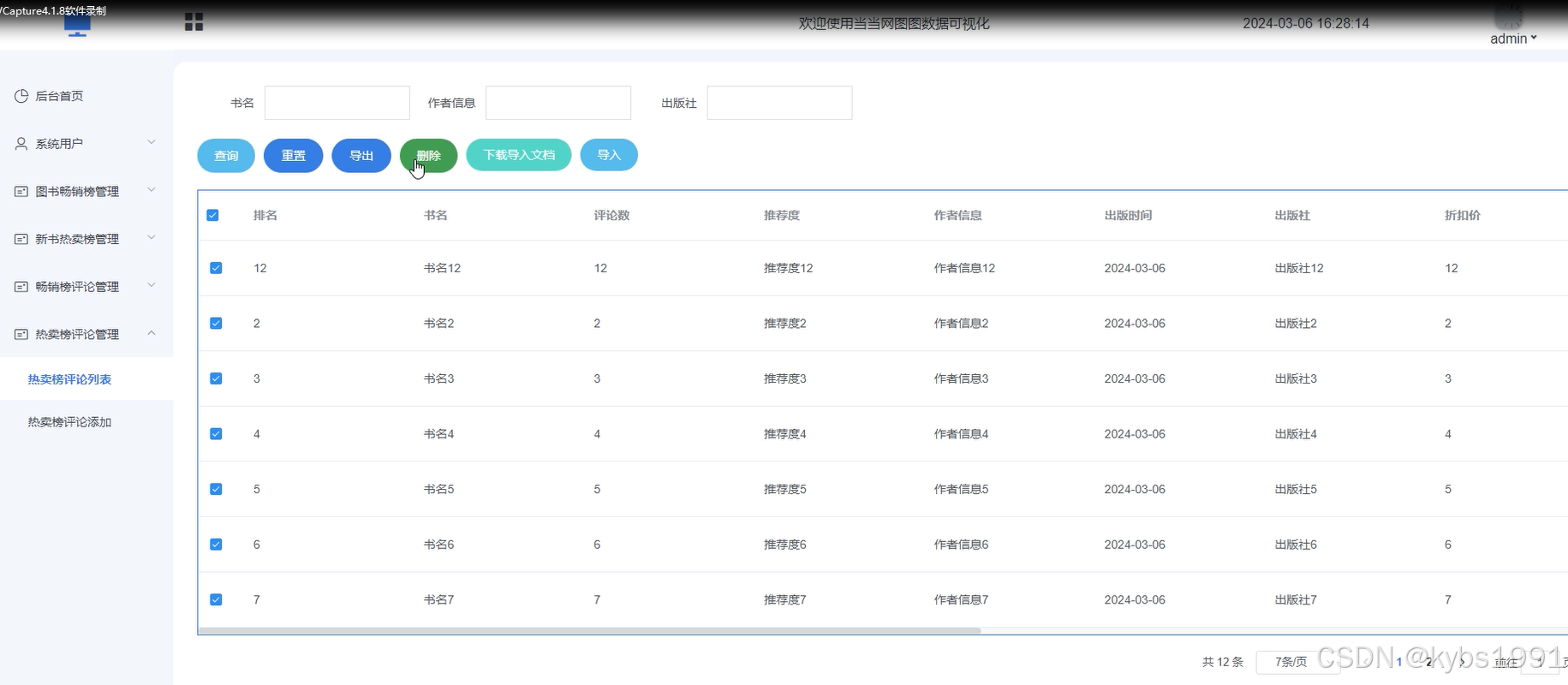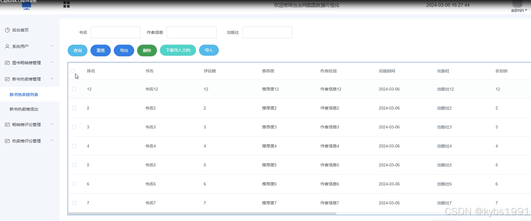新书热卖榜信息:记录新书热卖榜单,包括添加、编辑、删除榜单等数据项。