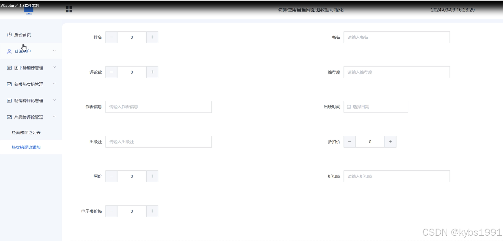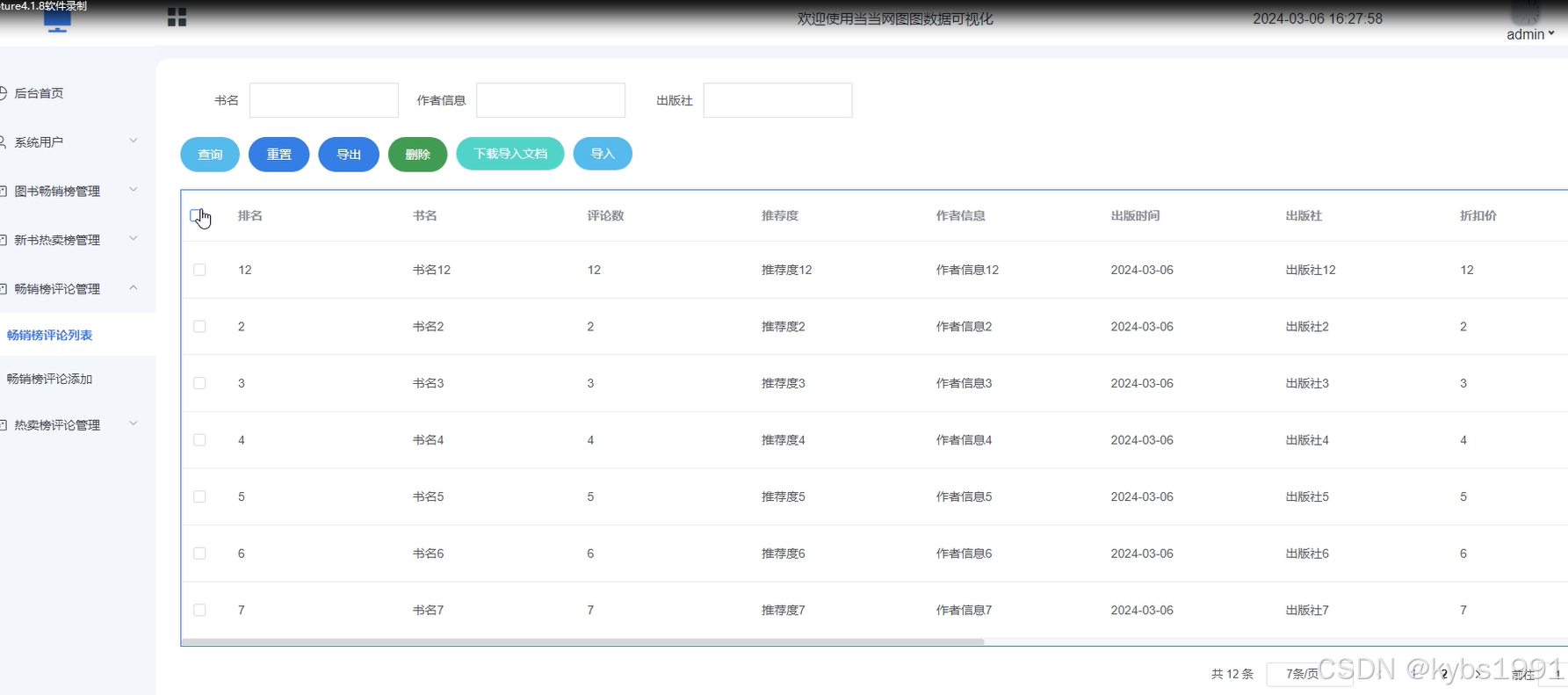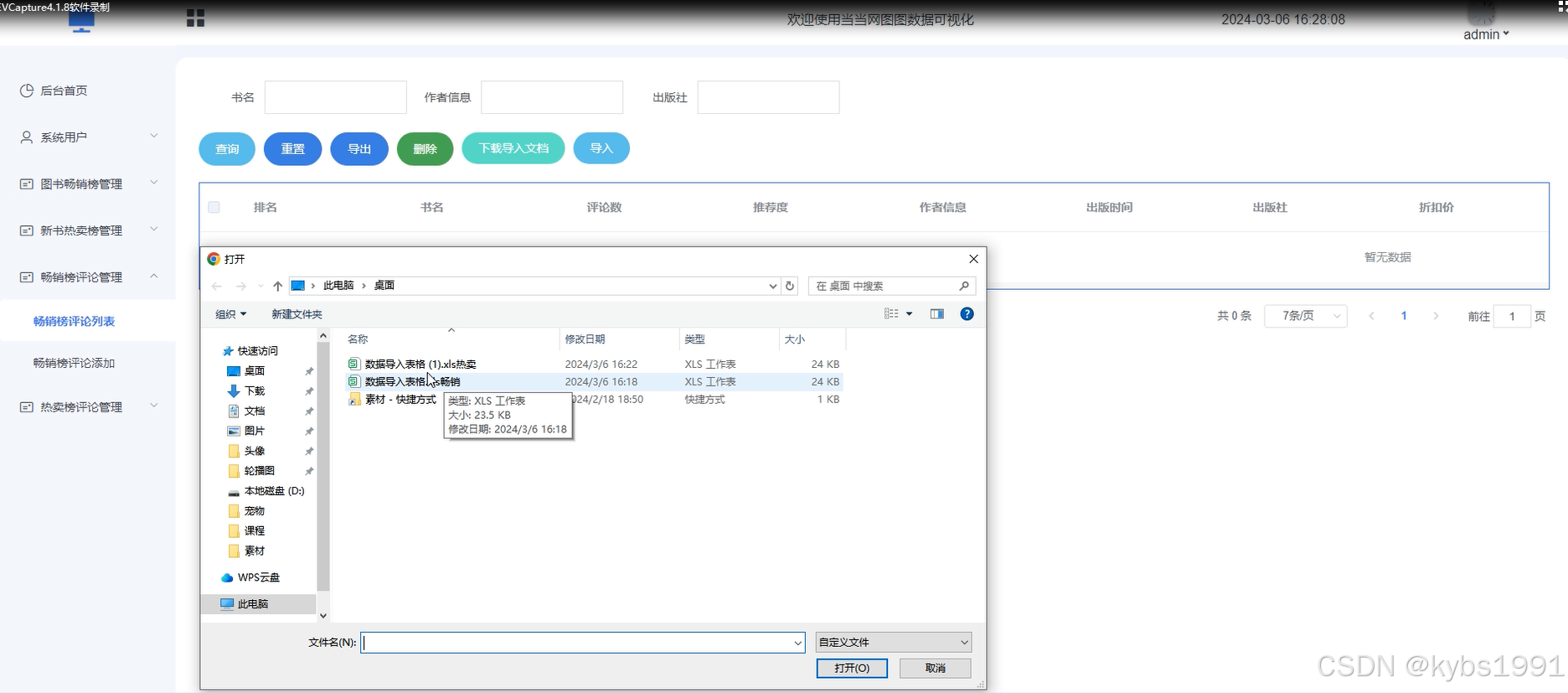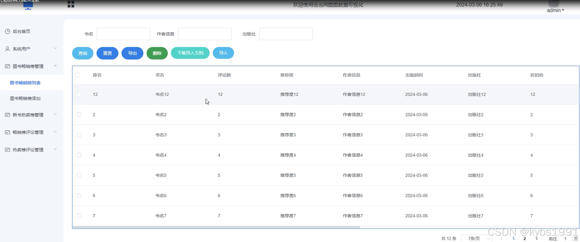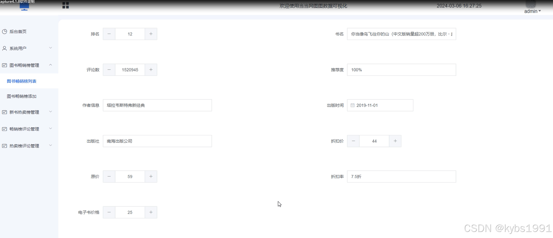 当当网图图数据可视化设计与实现总体后台管理员模块。