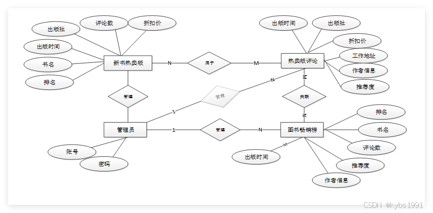从前面可以分析到数据库中最重要的是图书畅销榜信息,新书热卖榜信息,管理员信息。分析可以得到如下数据描述: