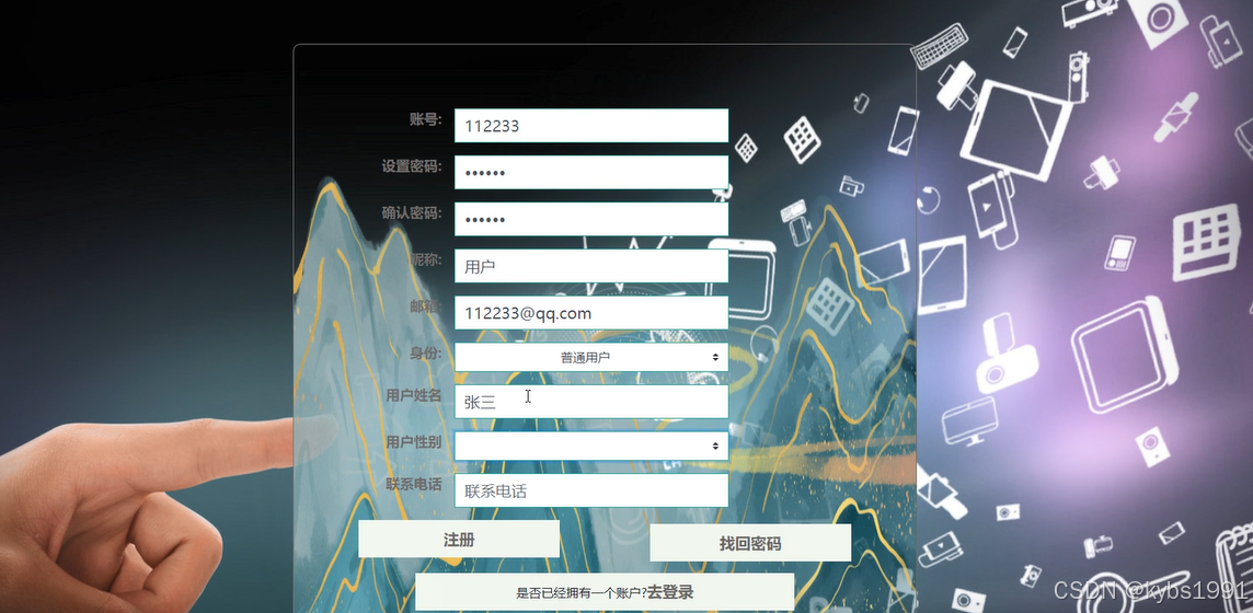 (1)注册登录:用户通过注册登录系统,可通过点击头像中我的账户,对个人信息进行增删改查。比如个人资料、头像和密码修改。