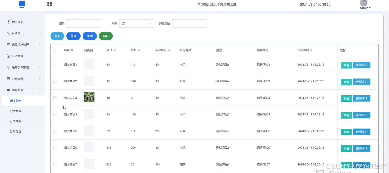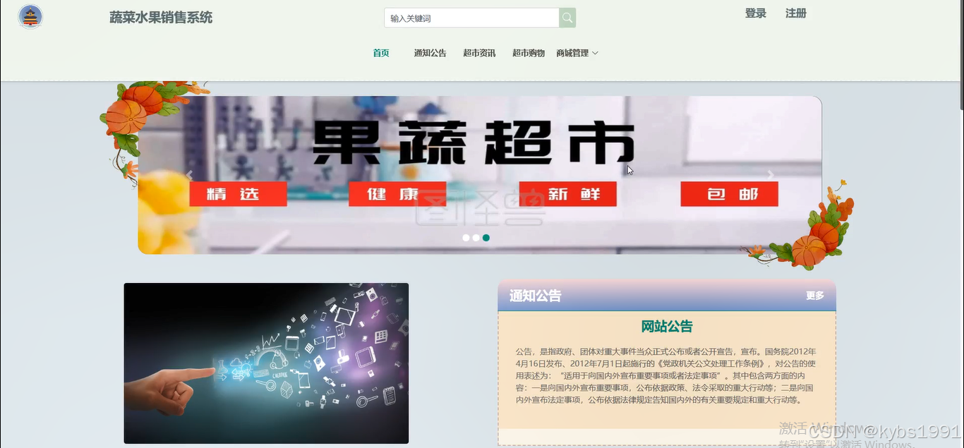 后台主要是管理员的角色功能,用户不能进入后台,管理员进入以后可以对首页的轮播图,商城公告,超市购物/分类及其订单进行管理。