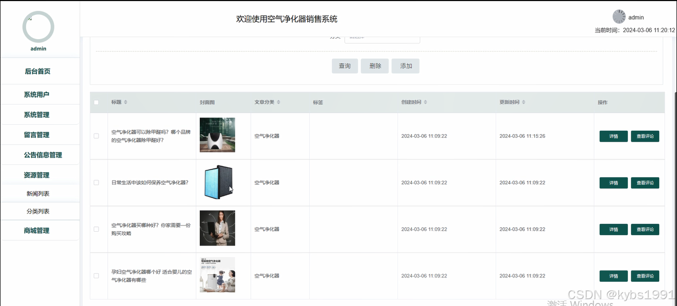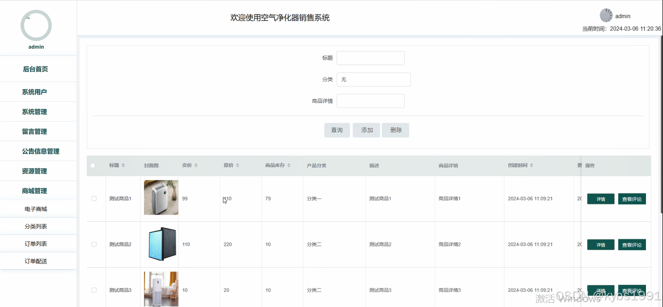 Secondly, we built a product display module, administrators can input all kinds of air purifier information, including product characteristics, prices, parameters and so on. At the same time, the system also provides classification and search functions, which is convenient for users to screen and find the right air purifier according to their needs.