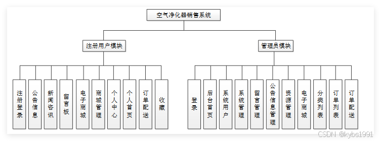 空气净化器销售系统我划分为了用户管理模块和管理员模块这两大部分。