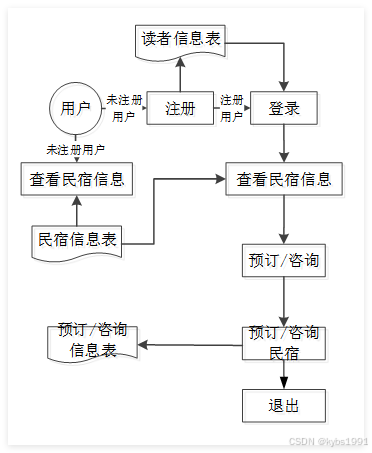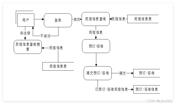 开发民宿管理系统APP最主要的一个目的就是实现用户对民宿的预订/咨询,图2-4就是系统的数据流图。