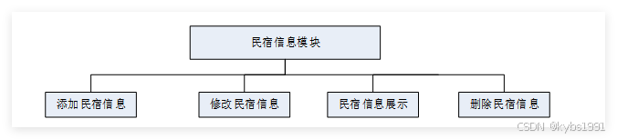 民宿管理系统APP是中需要存储不少民宿信息,其模块功能结构,具体的结构图如下: