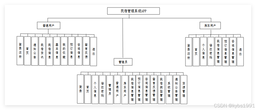 民宿管理系统APP我划分为了普通用户管理模块、房东用户管理模块和管理员模块这三大部分。